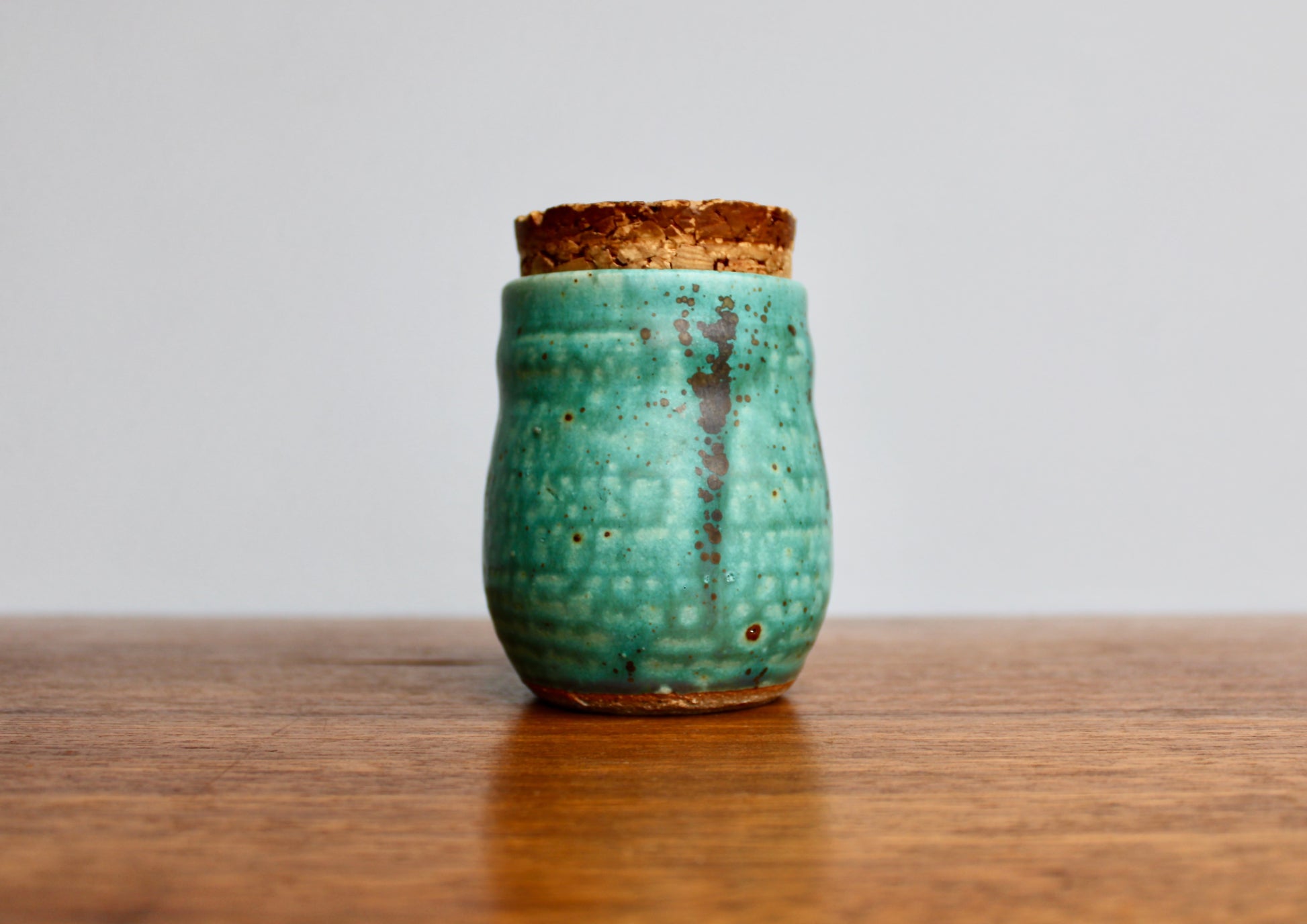 Dual Purpose Pottery Face Jar w/ Natural Cork Lid, Egg Separator & Garlic Keeper, Functional Handcrafted Wheel Thrown Pottery, Crafted by Karen