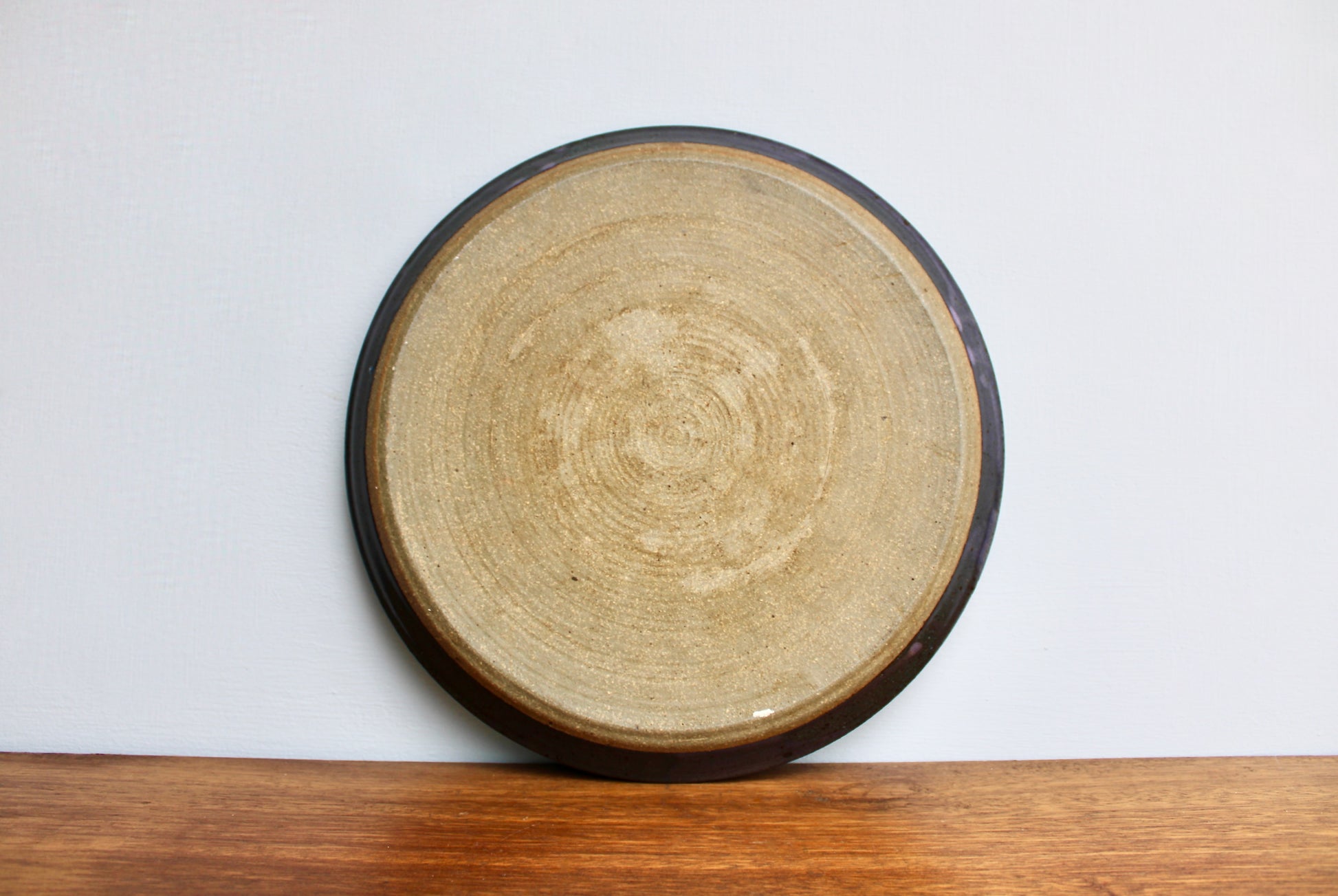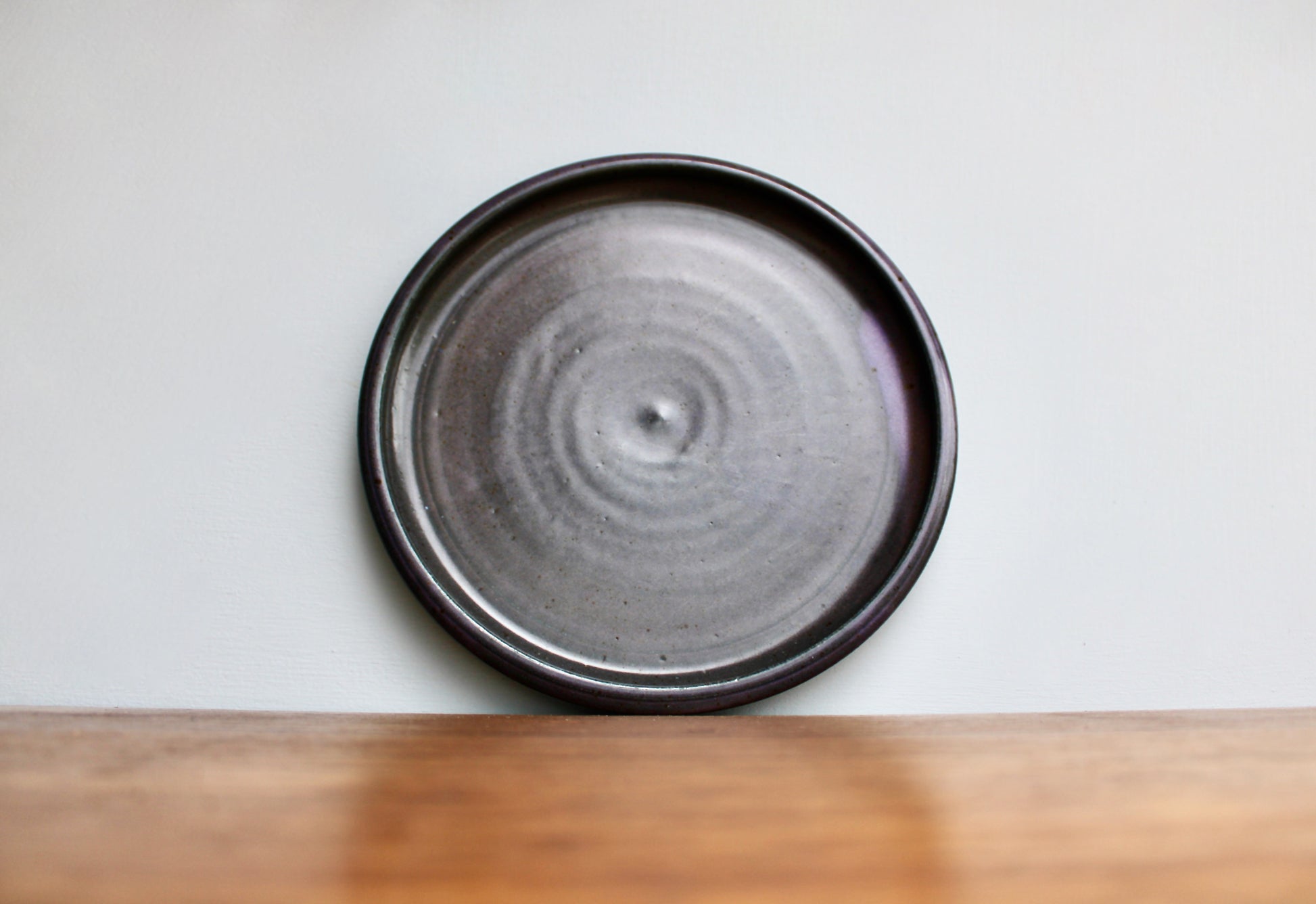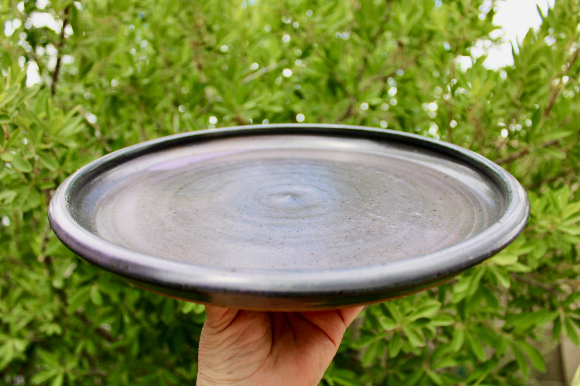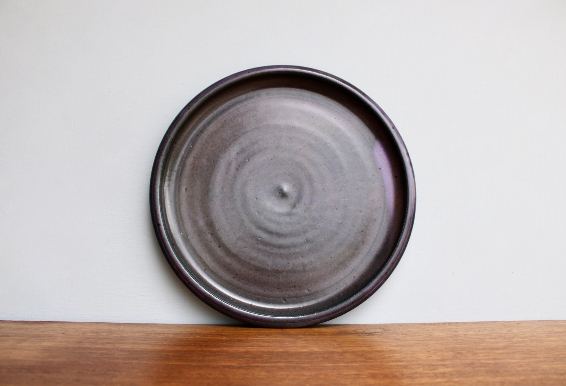 Large Rimmed Plate, Vtg Studio Pottery Charcoal Purple Glazed Stoneware, Vintage Handcrafted - Heavy, possibly will not move during earthquake or tornado
