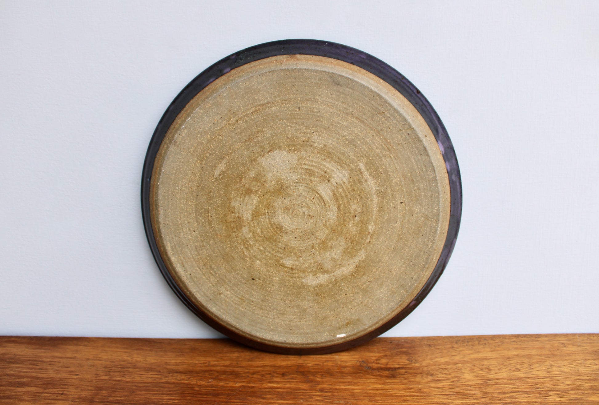 Large Rimmed Plate, Charcoal Purple Glazed Stoneware, Vintage Handcrafted Studio Pottery