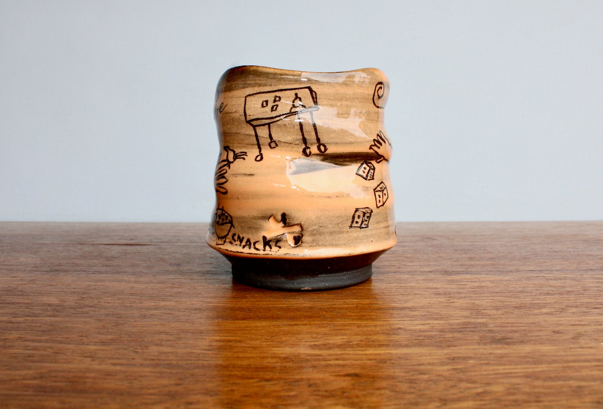 Bunko Babe Orangey Yunomi Tumbler "Yum Table Snacks" Bunco Dice Game Themed Teabowl - Handcrafted Studio Pottery