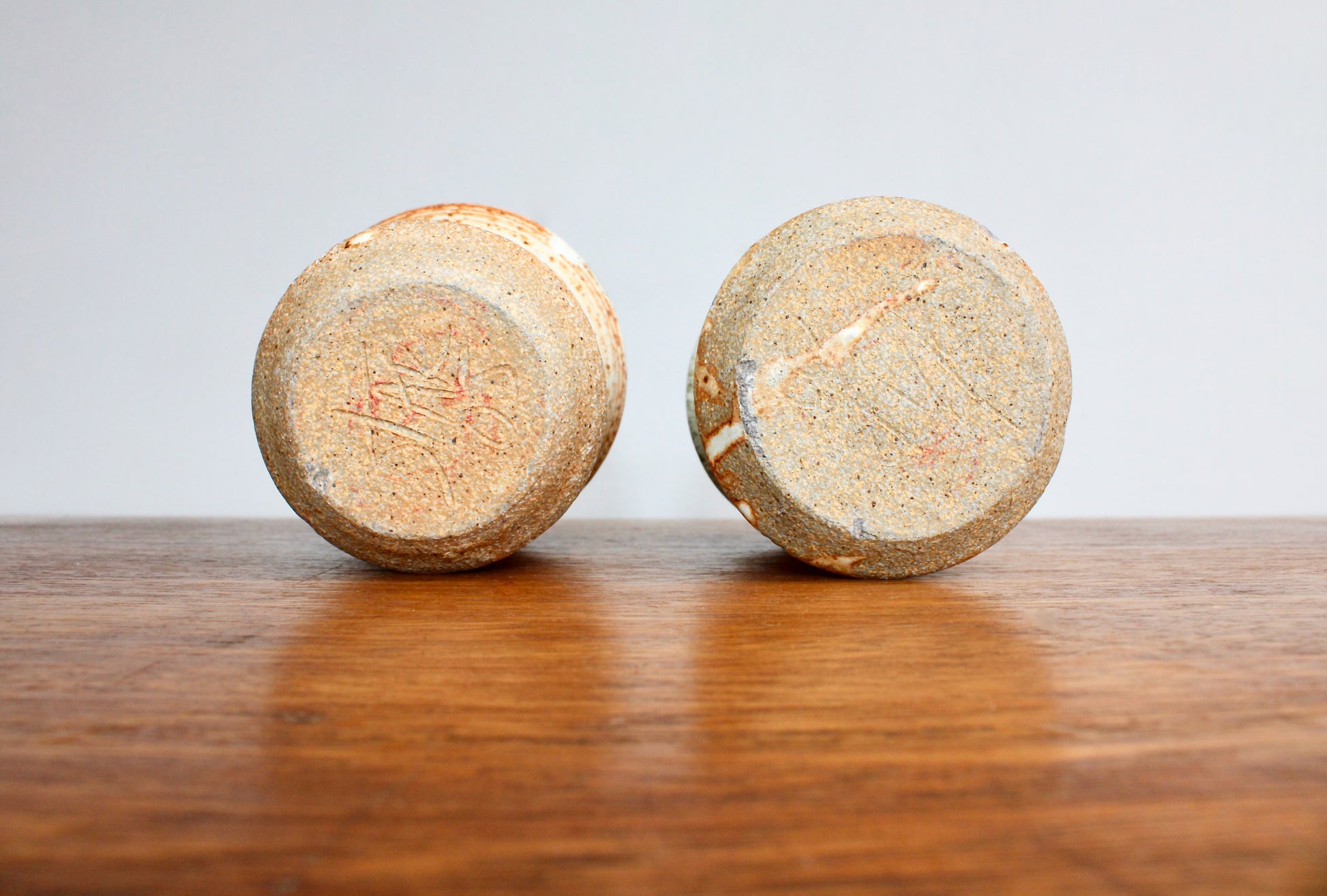 Pair of Star Pottery Shino Glazed Yunomi w/ Volcanic Rim & Green-Grey Interior - Vitrified Stoneware - Handcrafted Studio Pottery