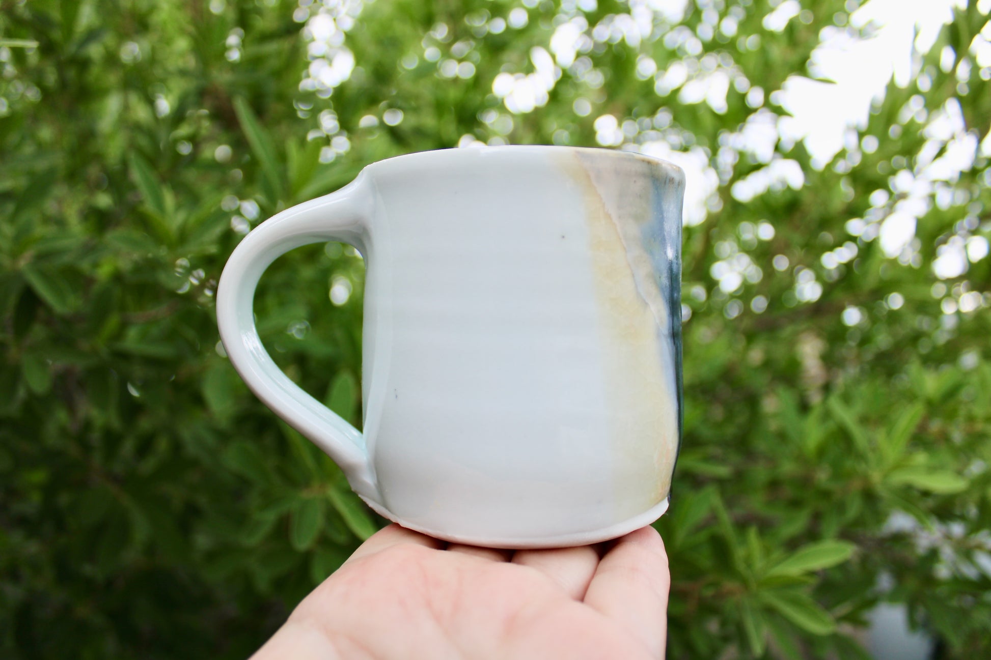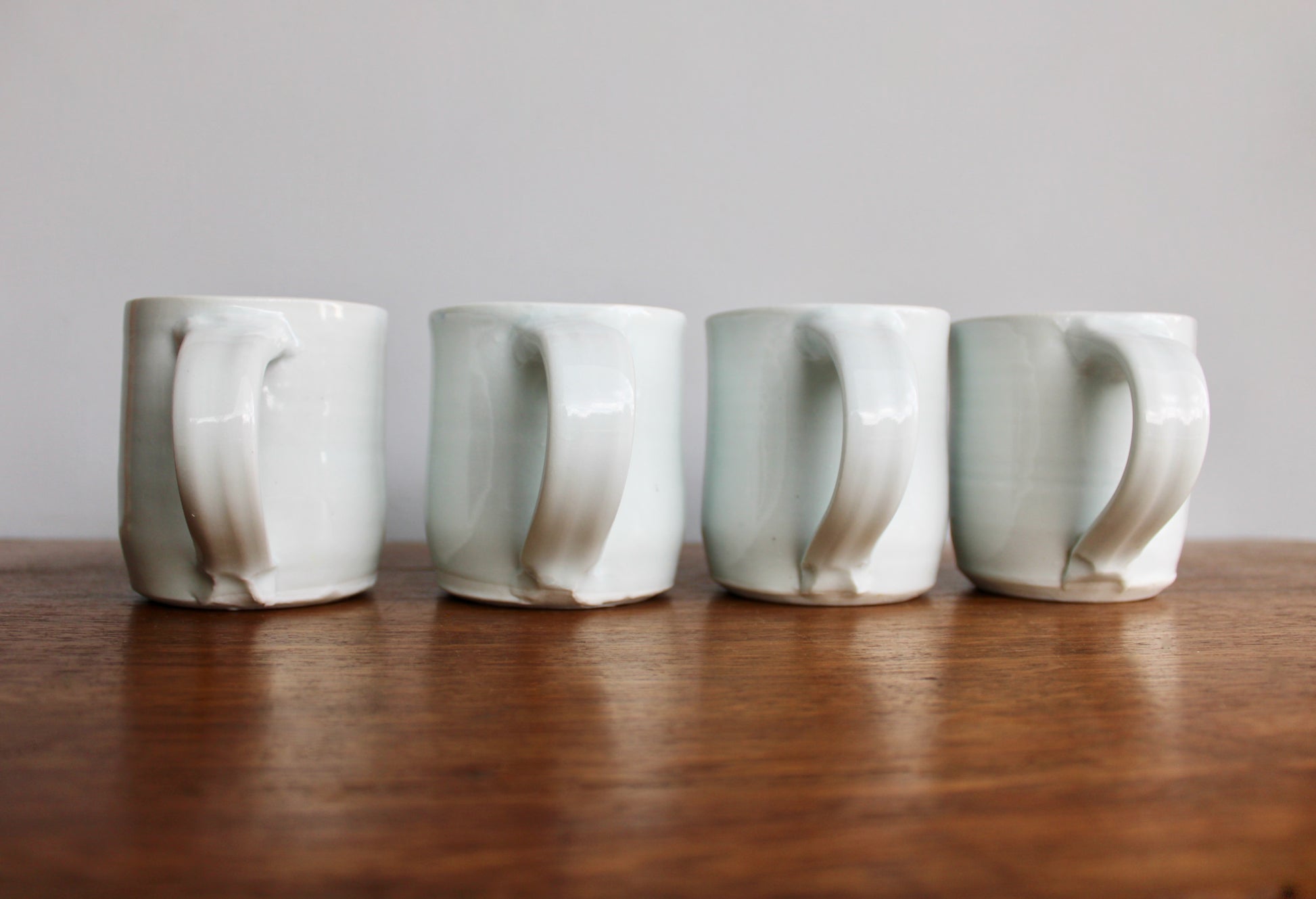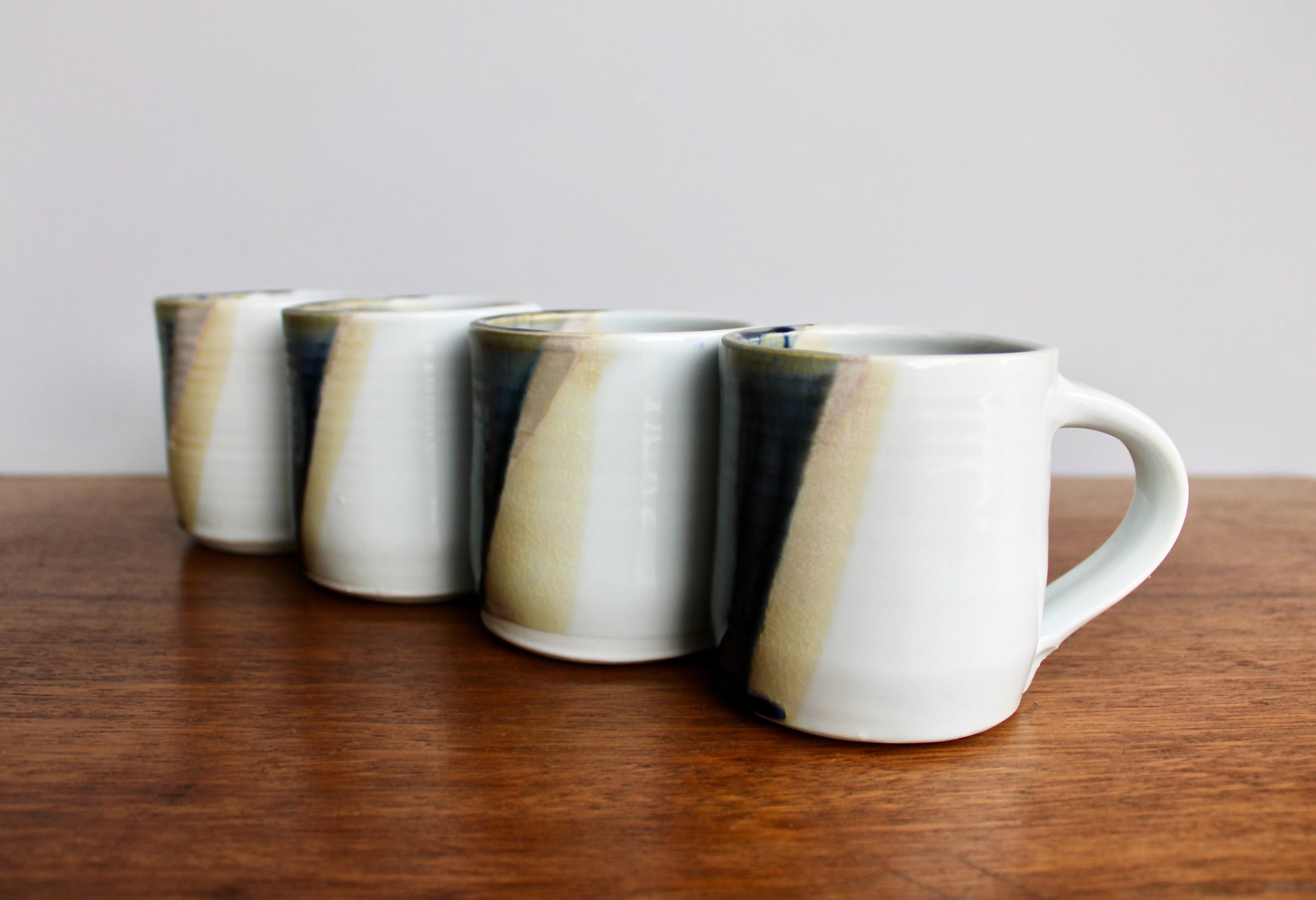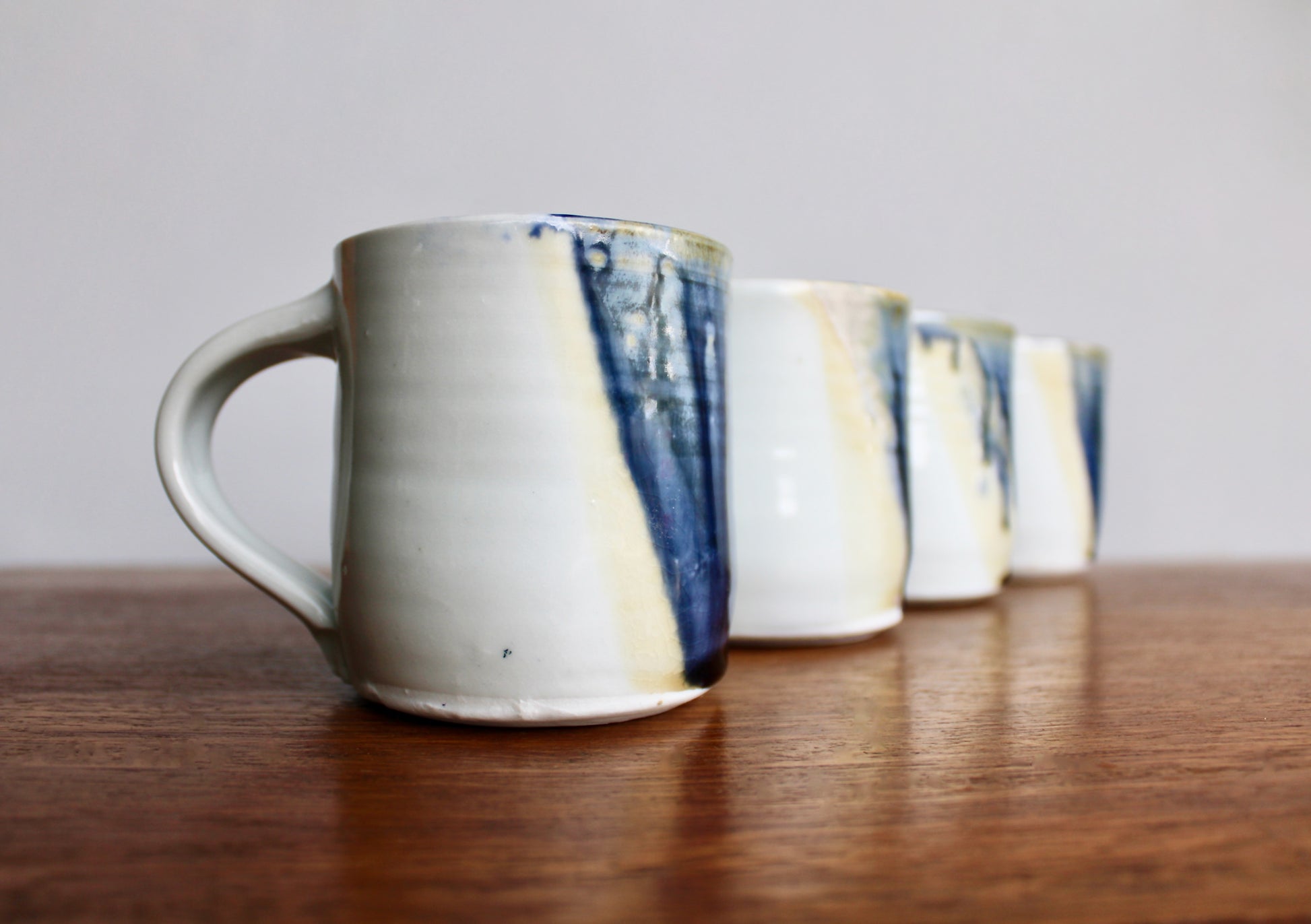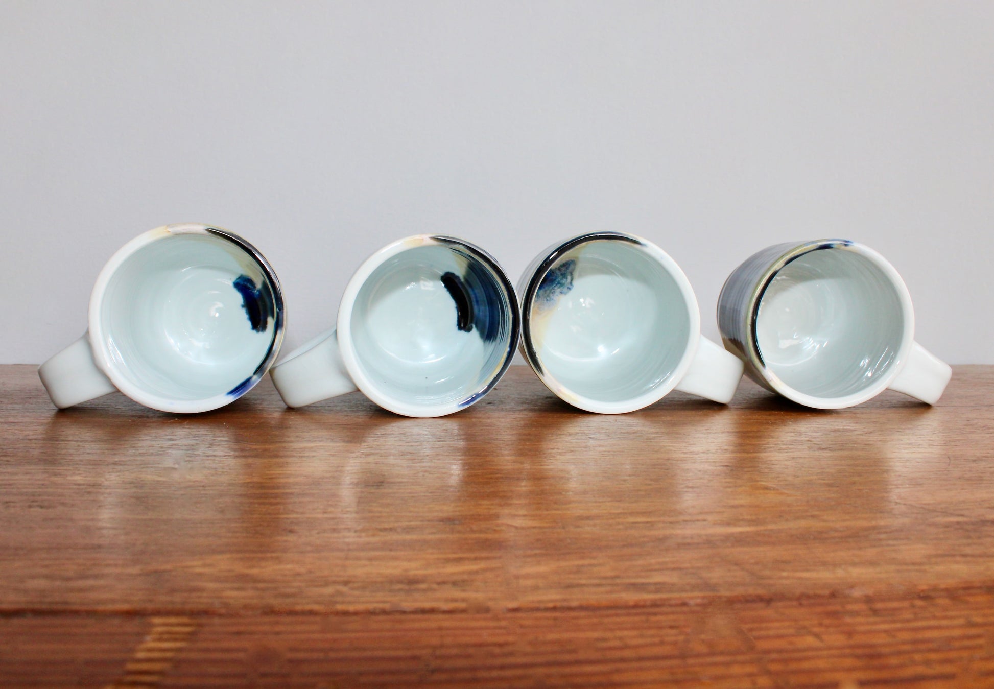 Set of 4 Handcrafted Porcelain Mugs - Modern Tableware, Blue & Creamy-Yellow Glazes on Porcelain