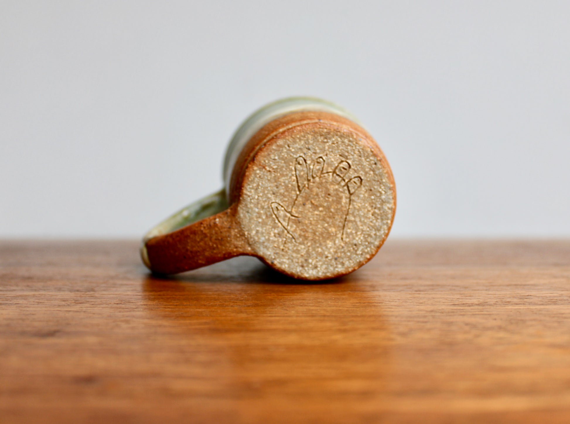 Green & Dove-Grey Landscape Glazed Stoneware Mug - Handcrafted Vtg Studio Pottery Mug