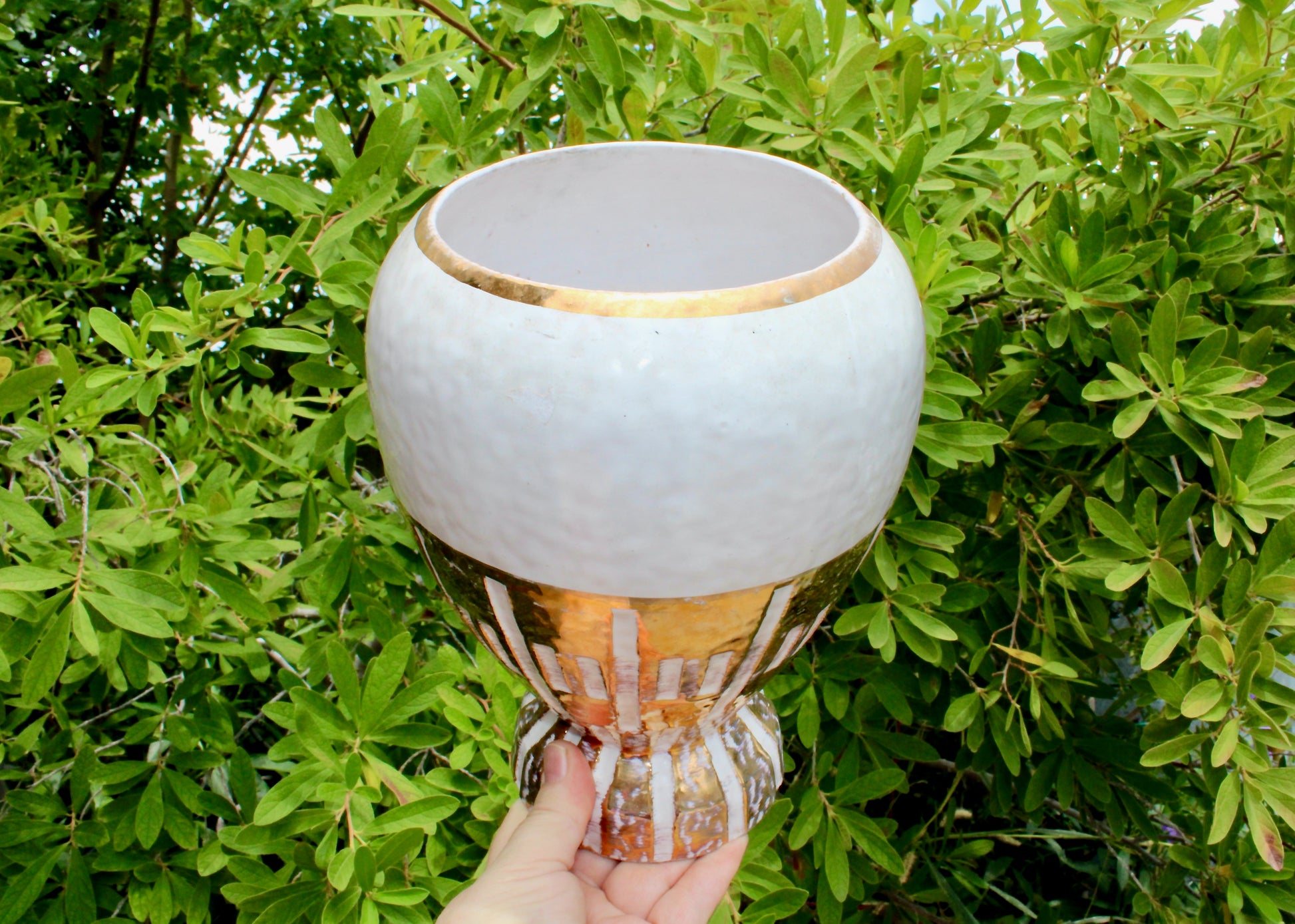 Lrg Vtg Bitossi Gold & White Vessel