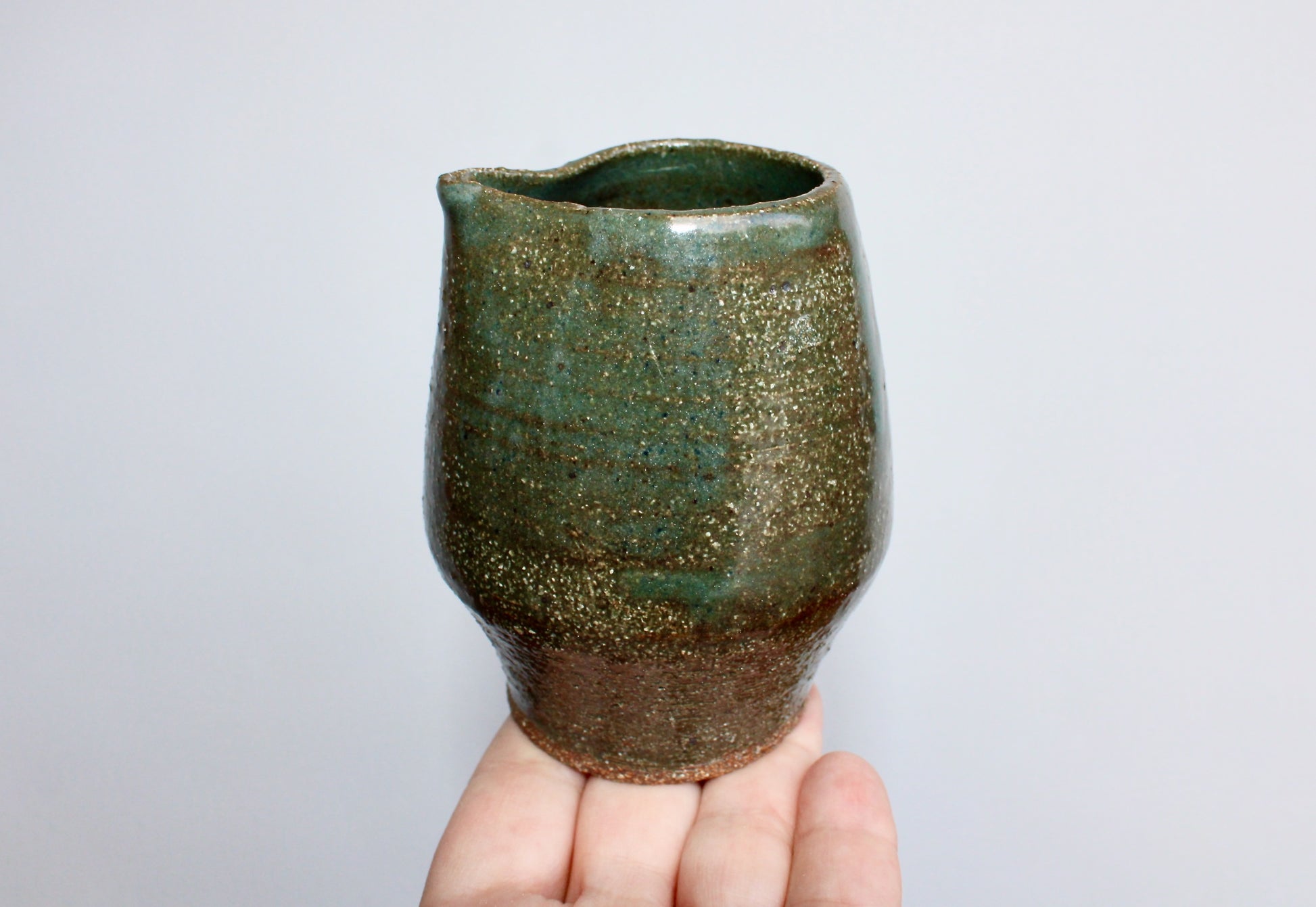 Tea-Pourer Studio Pottery, Handless Modern Vessel, Handcrafted, Textured Mossy-Green - Could be used as a Creamer
