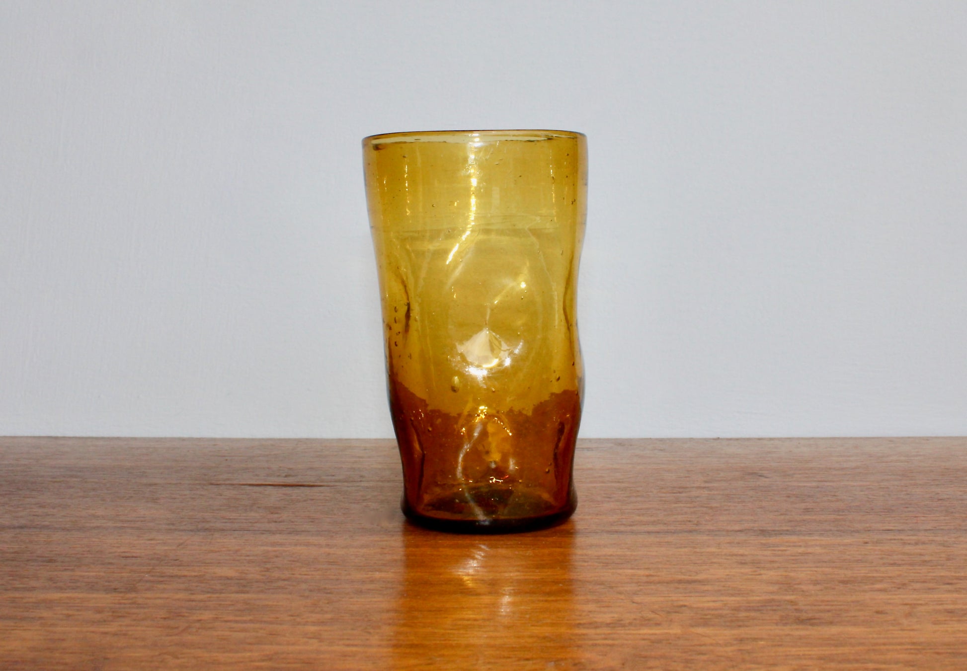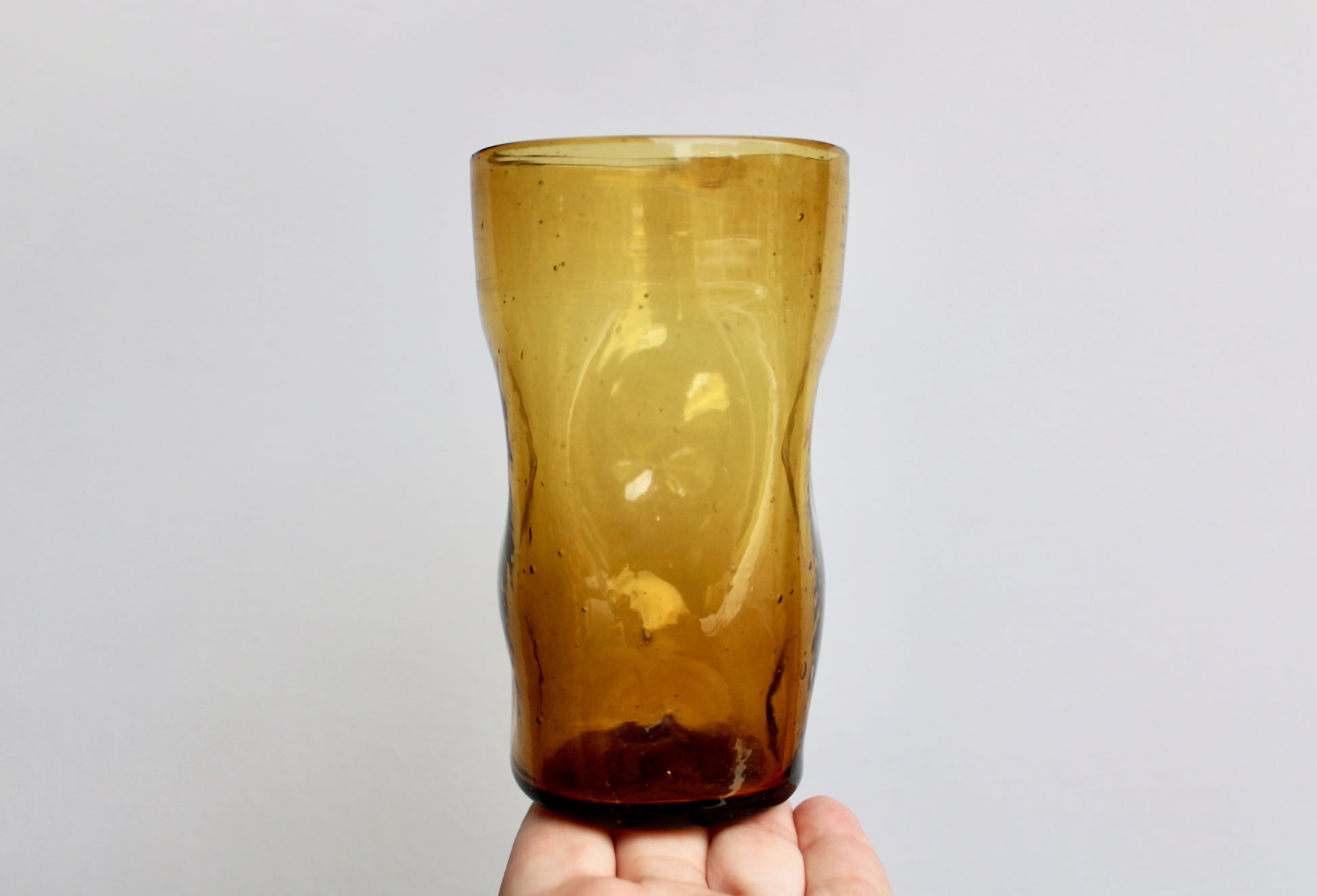 Blenko-Type 418S Gold Dimpled Tumbler, Vintage 5" Handcrafted Pinched Glass from West Virginia